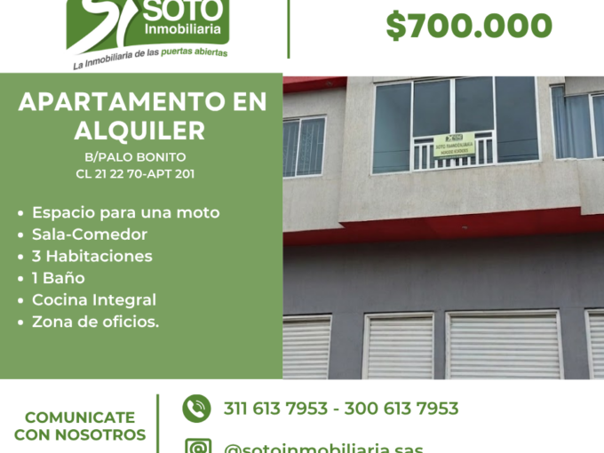 SE ALQUILA APARTAMENTO – BARRIO SAJONIA CL 30 24A 02