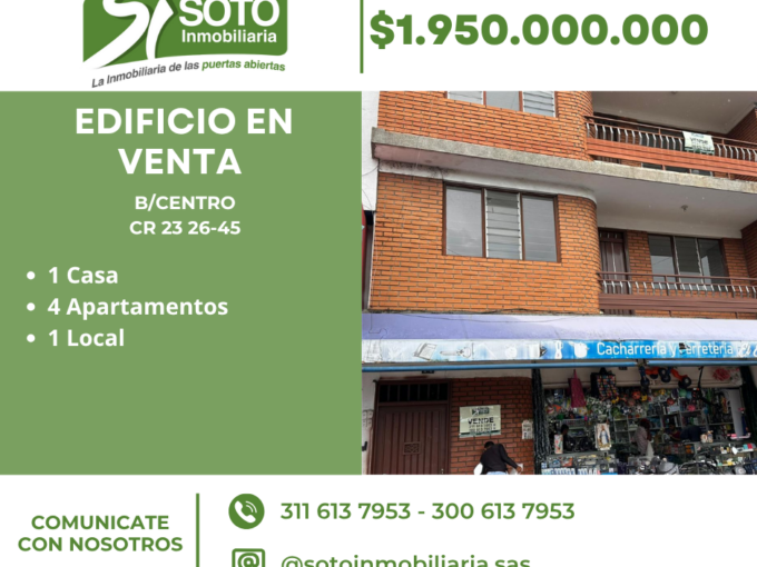SE VENDE EDICIO UBICADO EN EL CENTRO DE TULUA EN LA CRA 23 26-45