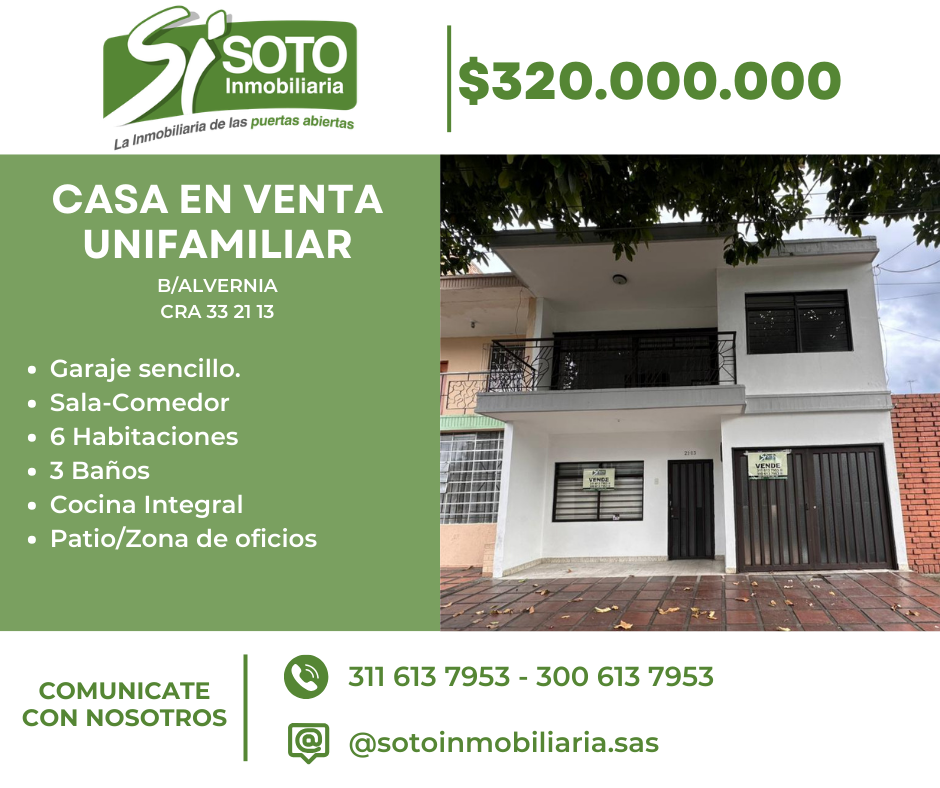 Hermosa y amplia casa unifamiliar ubicada en uno de los sectores más centrales y tradicionales de Tuluá: Barrio Alvernia, con excelente acceso a transporte, comercio, colegios y servicios.